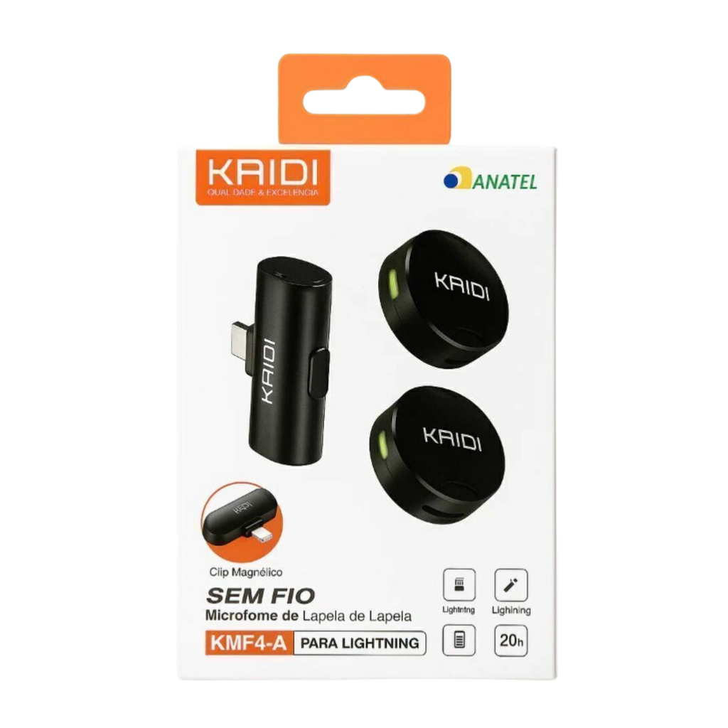 O Kaidi KMF4-A é a escolha perfeita para quem busca profissionalismo, praticidade e qualidade de áudio em um microfone de lapela sem fio para iPhone e iPad.